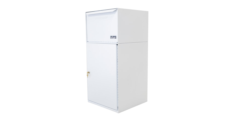 dVault’s Collection Vault is a extra large parcel drop box for deliveries with a heavy-duty collection bin. Its expert design protects contents from tampering and theft and can be installed curbside or directly against a home/building. Safely stores 2+ weeks of mail and packages.